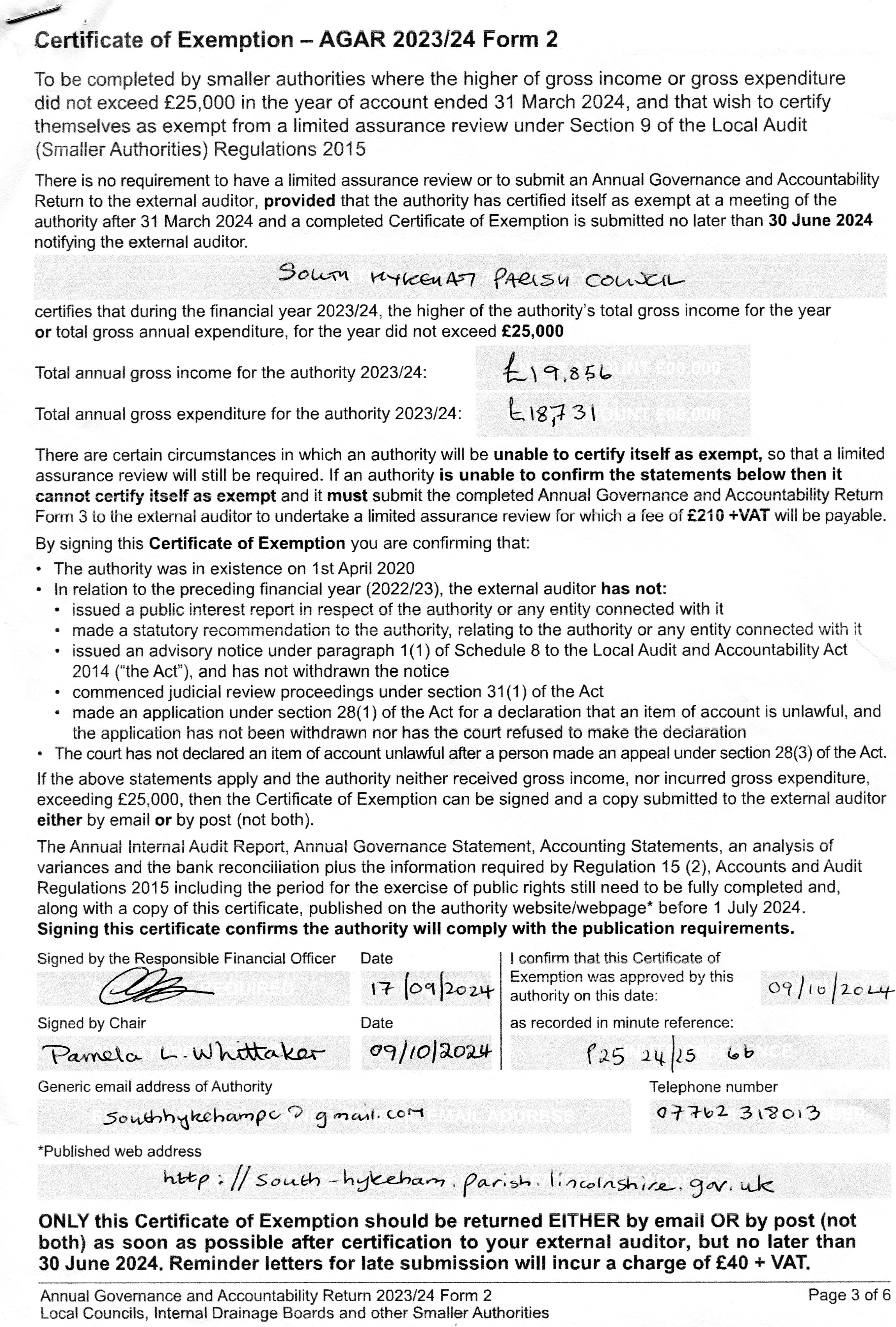 2023-24 AGAR Certificate of Exemption