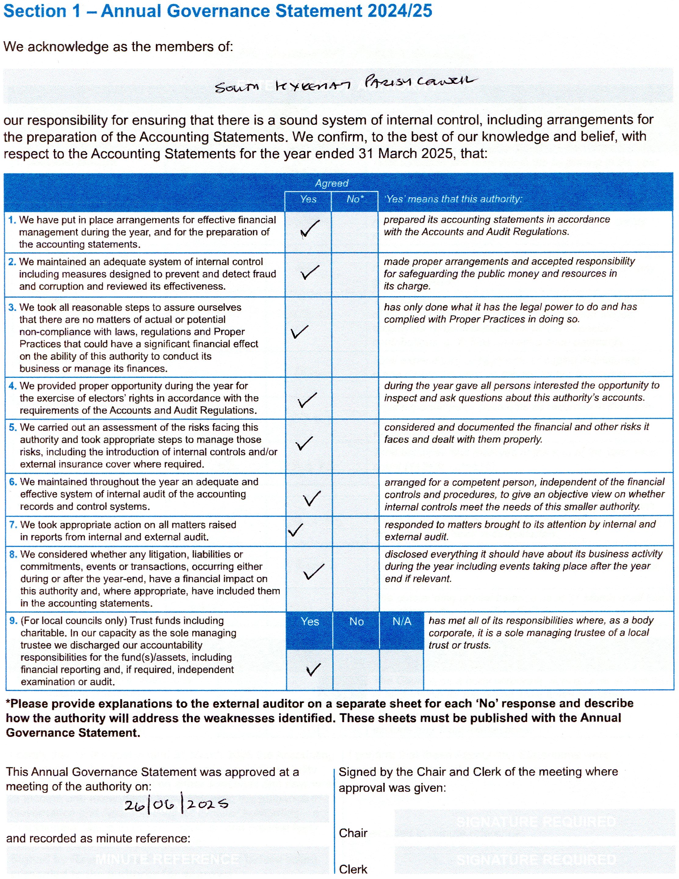 2024-25 AGAR Annual Governance Statement
