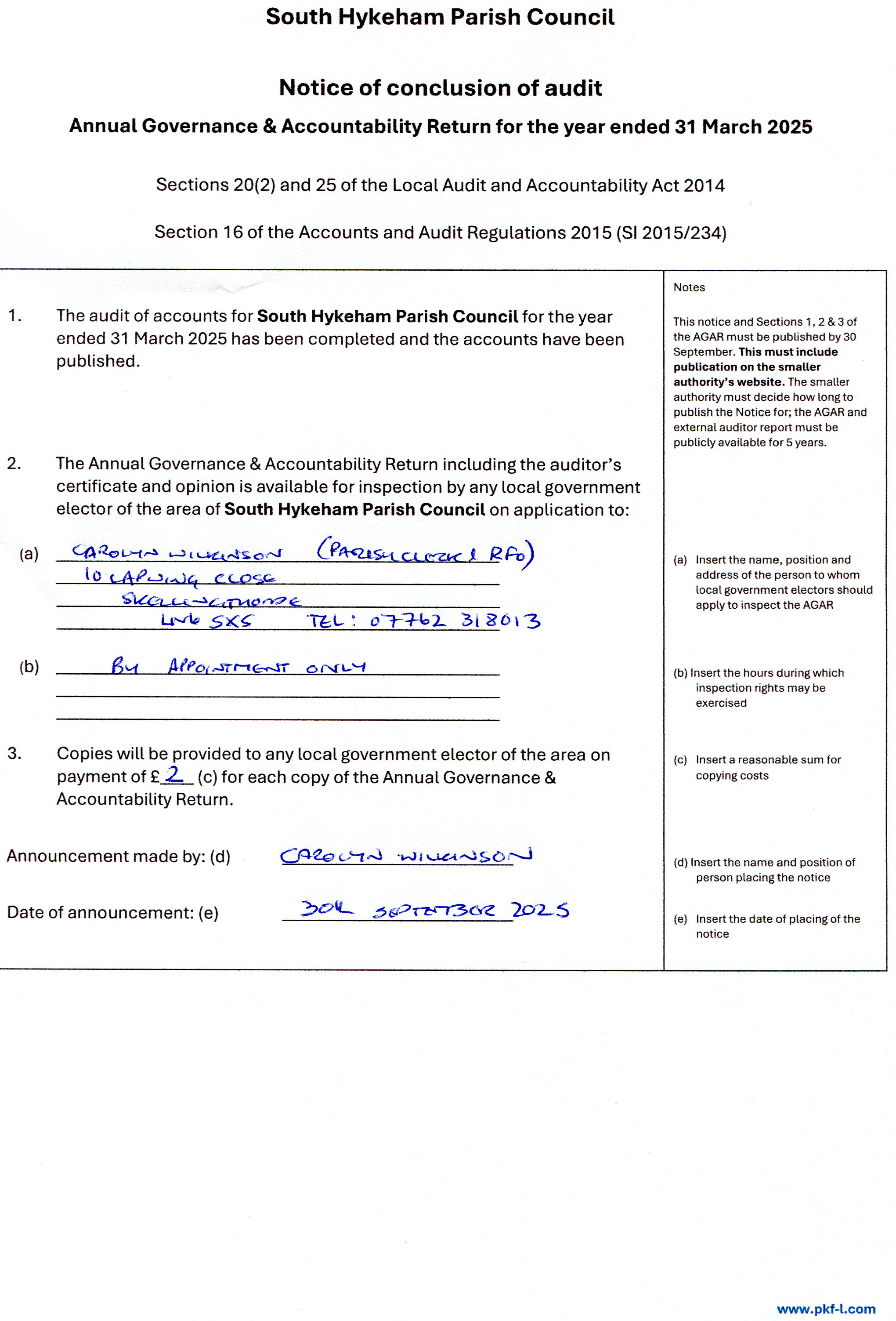 2024-25 Notice of Conclusion of Audit